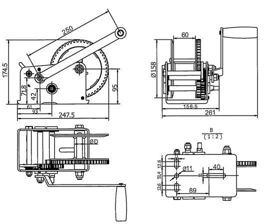 Rock Tilhengervinsj manuell brems 1140 kg
